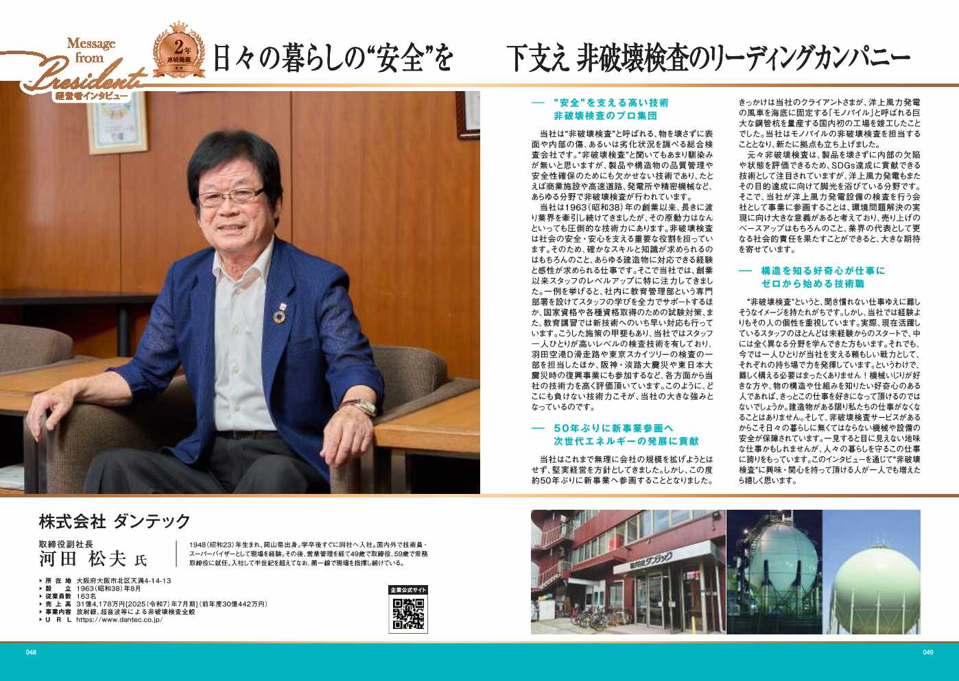 | 2025-12-12 | この度、東京商工リサーチ社が発行する優良企業紹介誌「ALevel(エラベル)2027関西版」に2年連続弊社が掲載されました。 「ALevel(エラベル)」とは、「Aレベルの会社を❝選べる❞」をコンセプトにした、民間信用調査機関として最も歴史のある東京商工リサーチ社が出版している地域と人と企業を結ぶ地域密着の企業情報誌です。 「経営者能力」、「成長性」、「安定性」、「公開性・総合世評」の評価ポイントから総合的に点数を算出したものを「TSR評点」と称し、「日本企業の上位8%の評価を得た優良企業」のみが掲載されています。 今回「ALevel(エラベル)」に掲載させていただけたことは、皆様のご支援とご指導の賜物と、深く感謝しております。今後ともより一層のご支援とご協力を賜りますようお願い申し上げます。 「ALevel2027」WEB版の弊社紹介ページは以下のURLよりご覧ください。 |